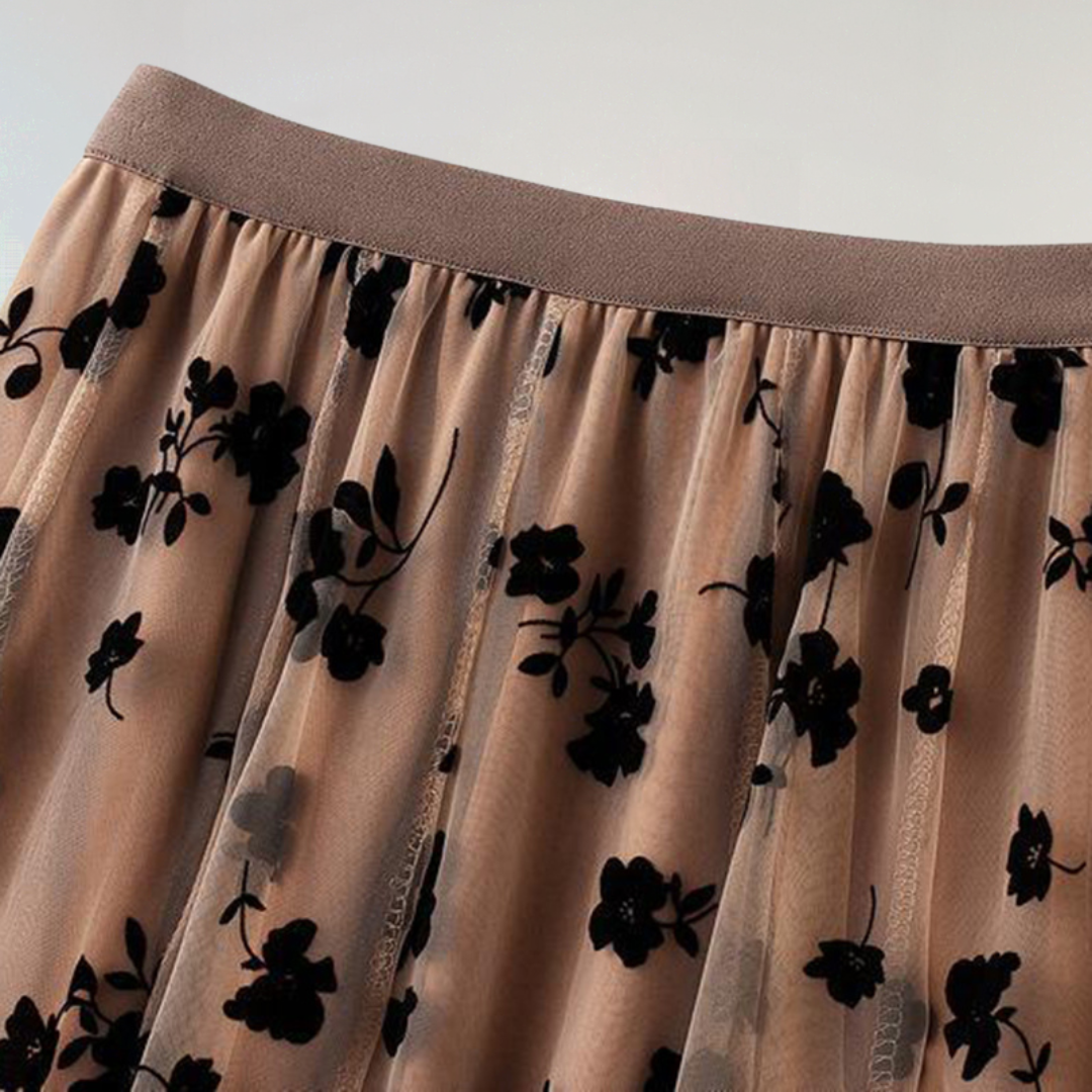 Elevate your wardrobe with this elegant and feminine Floral Tulle Midi Skirt. Designed with a flowy A-line silhouette, this skirt is perfect for adding a touch of romance and sophistication to any outfit. The soft broadcloth fabric and delicate floral embroidery create an effortlessly chic look for summer days and special occasions.